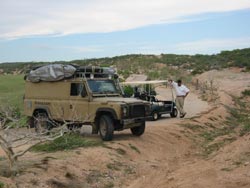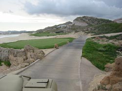 The next place was Cabo San Lucas. We had high hopes of a good party spot but it was just a touristy place filled with the usual american bars and restaurants at exhorbitant prices. The only interaction with the locals seemed to be based around offers of drugs and sex (not free). We searched the beaches for some surf but the only good bits were rocky and beyond our abilities. While searching for a campsite along a dirt track, we found ourselves landying onto a posh beach side golf course. The landy just fitted on the little road for electric golf buggies but the security guys didn't believe us when we said it could take two sets of clubs in the back and saw us off the premises.