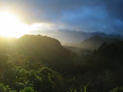 We arrived at the Volcan Baru national park after a nice steep climb in low box. As the sun set we were treated to a stunning view into the valley below. Unfortunately, the subsequent lack of sun and altitude of around 2500m meant one of the coldest nights of the trip so far. Long forgotten hats, jumpers and fleeces were donned and we had a game of scrabble (becoming a seriously uncool habit), surrounded by hastily tied tarpaulins flapping in the wind. A brisk walk the following morning in search of the quetzal bird was unsuccessful, although their strange wind chime like call was all around us. We did find a huge golden beetle which flew with its body vertical, well wicked.