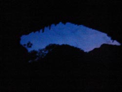 We got there in time after driving through some super scenery in Mochima National Park. The resident guide at the cave, first discovered and studied by the German scientist Humbolt in the 18th century, was friendly and let us camp right at the entrance for $3, which in true Venezuelan campsite style, we never paid. As dusk fell the strange squawking and clicking sounds, used as a type of sonar similar to bats, we'd been hearing from above started to get louder as more of the birds gathered at the entrance to the cave. We stood under the arched entranceway as the birds flocked out above us, trying to get a decent picture but there wasn't enough light.