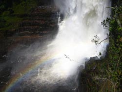 In the morning we returned to Aponwao (or Chinak Meru in Pemon) determined to get a trip to the falls for the right price. This turned out to be easy as luckily there was tour group just setting off and so we joined them. A featureless boat trip down river and a 10 minute stroll brought us to the spot where the river plunges 110 metres off a cliff, the highest of the Grand Sabana falls and a great sight. A couple of hours passed quickly, walking between the pozos and exploring the area, entertaining ourselves by trying to find an insect to feed to the plants and chuckling at the Oriental approach to wildlife interaction. Although there was no point in dressing up like a spaceman here during the day, early evening in most parts of the Sabana is a different story. The puri-puris come out until about an hour after sundown and long sleeve shirts and hats are essential and still they buzz around your eyes like crazy. Finding a windy campsite is the best way of avoiding them.