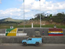 Desperate to escape Santa Elena, we drove the short distance to the border hoping to get across despite it being Sunday. There was a guy to do the immigration but nobody to sort out the car papers. We've been in Venezuela for well over our 3 months limit and the official was shaking his head and telling us it was 'a big problem'. He must have not really cared for he suddenly whacked a big exit stamp in our passports and that was it. We drove back a bit to camp by a lake for our last night in Venezuela.