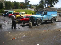 Leaving Cuenca we headed along the main road northwards towards the biggest Ecuadorian Inca ruins of Ingapirca, first coming across a handy oil change place where the landy had its regular blood transfusion. This time, though, the mechanic just let the oil spill out into the inspection pit and onto the ground, the first time such environmental irresponsibility has been witnessed on the trip (apart from our own!). Fuel and oil is cheap in Ecuador so it didn't cost much, including having the propshafts greased too. By chance we were right at the foot of a track which is a short cut uphill to the ruins.