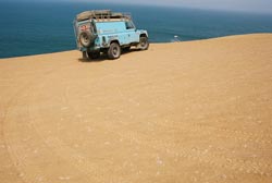 No such embarrassment in the VW-powered ex desert racer buggy as we shot up the slope with the girls screaming in the back. We zoomed round corners using the dunes as berms, over vertical drops and down into steep gullies - top stuff. Stopping at the top of a big slope we donned our sand boards and slid down as the buggy drove around to collect us. Speeding back up the slope and barrelling round a dune berm there was a 'crack' familiar to jungle driving landy owners. The driveshaft had snapped, leaving us stranded in the baking heat of the desert. A quick check of supplies revealed no tools, half litre of water and a pack of cigarettes for the driver. He'd given his two-way radio and mobile phone to his mate at the oasis!