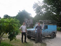 Emerging from Tikal, muddy but happy |