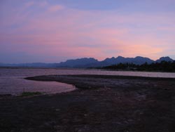 After another toasting drive south we found a beautiful deserted beach to chill and try to get the surfing thing knocked on the head, which gave the local crabs a good laugh. After a couple of days we were running low on supplies so took a quick trip to La Paz on the Gulf coast, via some wicked sandy tracks which necessitated lowering the tyre pressures, to stock up. Returning to the beach in the dark, we used the GPS for the first time in anger. The location is N24 03.194' W110 58.625'.