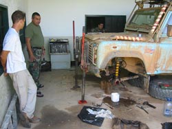 We took the first ferry across the river with the Toyotas that were stranded with us, the drivers having taken a small boat home the night before and returning in the morning. With it being so early we had to wait around before phoning Caracas for a new axle. Still totally knackered and covered in mud after our 5 day ordeal, we stopped opposite the hospital to enjoy some breakfast when a Range Rover turned up driven by the captain of the local National Guard. A quick chat with him and we were whisked to the barracks where his mechanic whipped off the stub axles and diff and, after an incredibly difficult extraction which took most of the afternoon, he got the broken axle out. We were given the run of the place, food, drinks, whatever we wanted while a car was sent to Caracas to get hold of a new axle. B was also packed off to the hospital after 6 days of tummy troubles, where some suitable drugs were provided, all courtesy of the good Captain Sanchez. While we were waiting we decided to take the easy way to Canaima - in a plane.