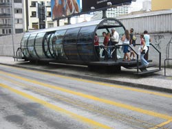 We arrived in Curitiba and it immediately gave us a European feeling, nearly everybody is white and the place is very clean. Not really a tourist place - still, we found an internet cafe and updated the web site, ate some still cheap and good food and wondered at the strange bus stops they are putting up here, a successful effort by the mayor to reduce traffic congestion. Friday night out was predictably unexciting so we left the next morning for Vila Velha, a national park with supposedly wicked rock formations and on the road to Iguazu anyway.
