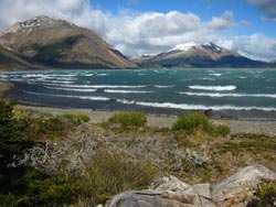 Three hours of hard scrambing later we arrived at the snowy summit. We didn't stay there long as the howling wind was so strong it almost blew us off our feet. Going back down was more fun as we could make good time sliding along in the snow. It still took two more hours to get back to the landy, tired and extremly hungry but happy to have conquered our first Andean rock of this trip.