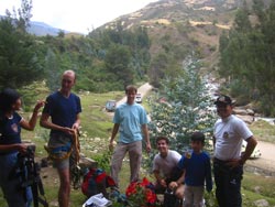 Unfortunately, the 'rapids' are only class I and II, very tame as the water level is pretty low at this time of year too. Even so it was a good laugh for an hour or more with a jovial crowd making the most of it. Nobody fell in but everyone seemed to be very wet at the end! Afterwards we carried the raft back on the roof of the landy, the extra weight making the springs creak and some swerving about giving the rooftop passengers sat in the raft a scary ride.